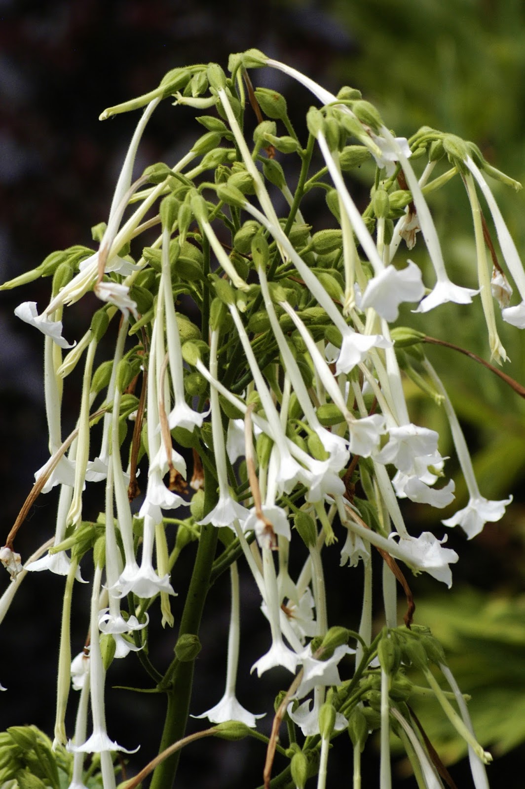 This is not the plant cultivated for tobacco; that one’s called Nicotiana tabacum. All parts of this one are toxic. Please don’t eat your Flowering Tobacco. Just sniff it.
