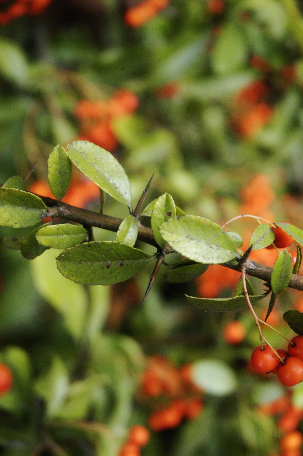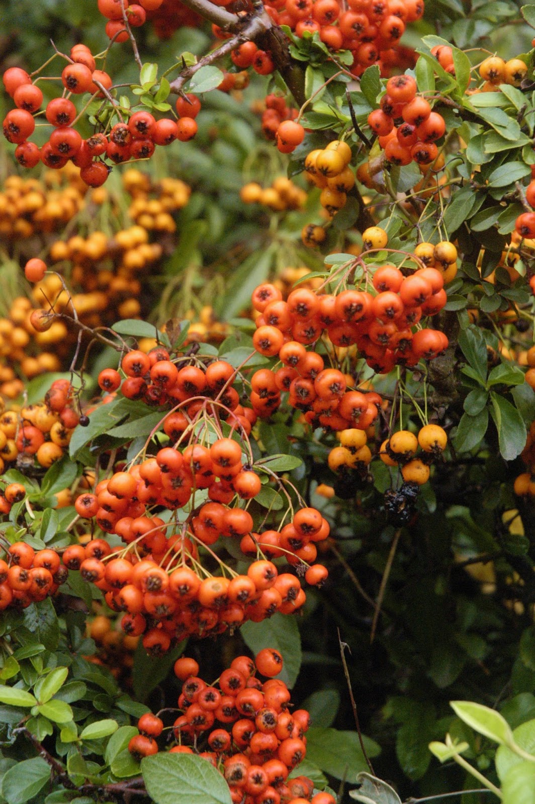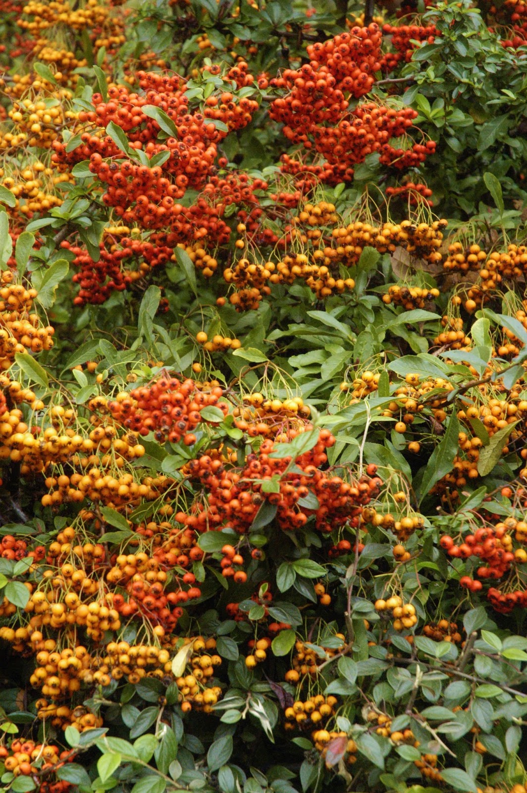 Firethorns are also available in low growing varieties, as well as those with yellow, orange or red berries. These can be quite effective when grown together, as is the case of the orange and red one in the photos.