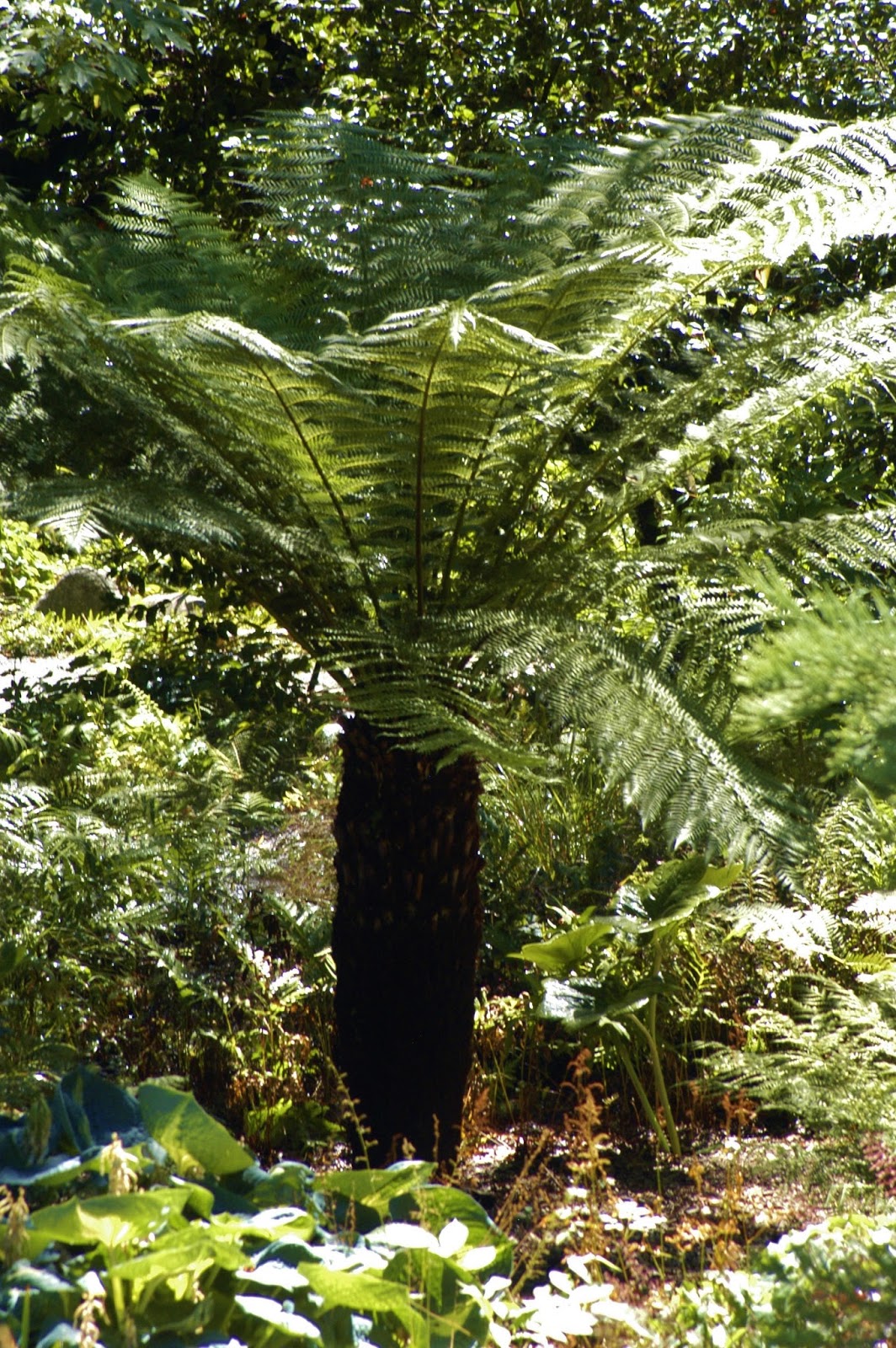 Here’s an example of “zonal denial.” Although this is the hardiest of the tree ferns, it will still be damaged by temperatures below 20F (-7C). But because this happens only rarely here on Southern Vancouver Island, the visual drama it creates makes it worth the risk. Plus, steps can be taken to protect the plant if these kinds of temperatures are expected. If you’re up for the challenge, look for a protected spot; the specimen here is growing under a fir and cedar canopy; sheltered but within the moderating influence of a nearby ocean lagoon.